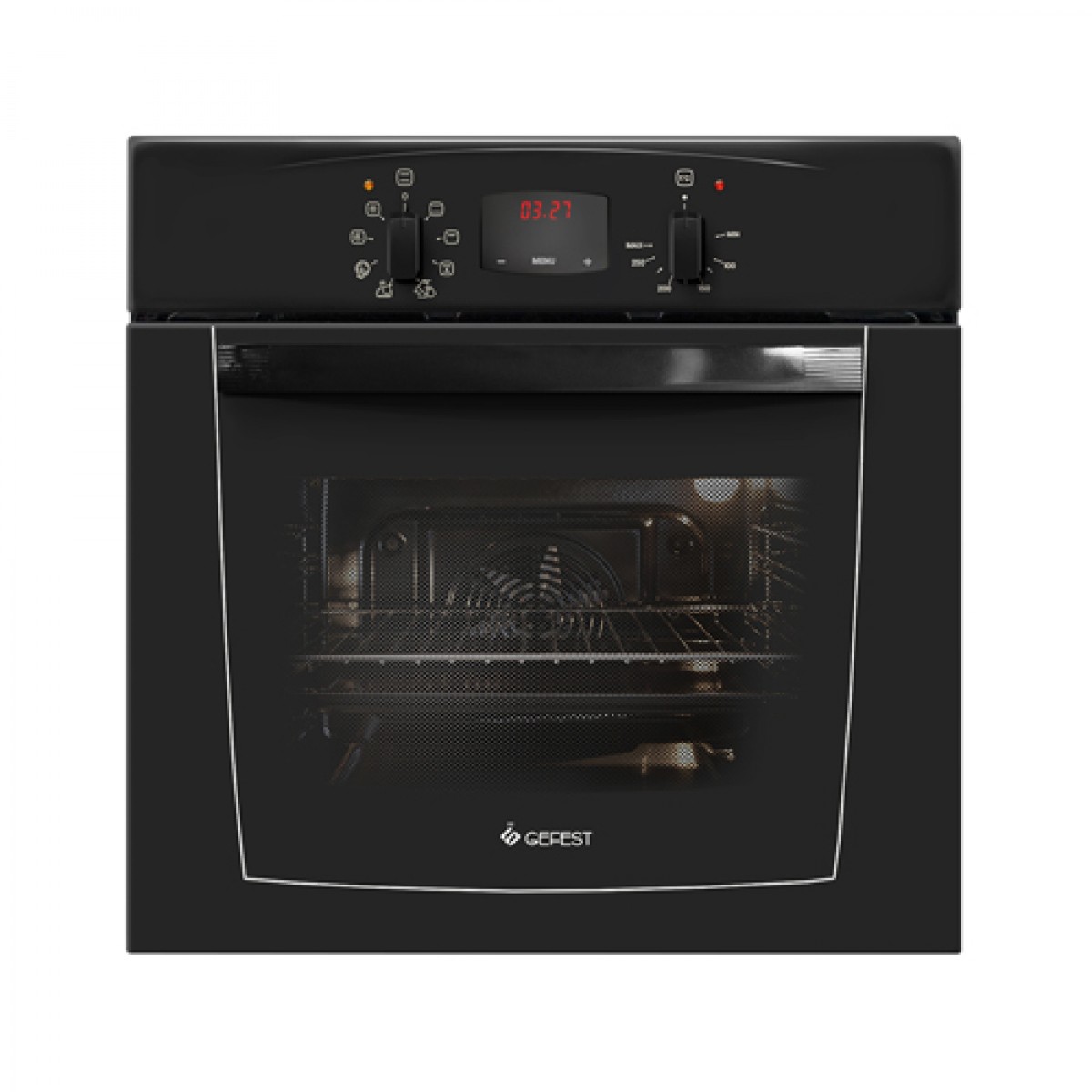 Электрический духовой шкаф Gefest 602-02 А с откидной дверцей станет Вашим главным помощником в приготовлении пищи. Объема в 55 литра вполне достаточно как для приготовления ужина на маленькую семью, так и праздничного застолья для большой компании. \nНаличие конвекционного вентилятора сводит к минимуму риск сырых или подгоревших блюд, так как теплый воздух циркулирует равномерно по всему объему духового шкафа. Имеется у Gefest 602-02 А и режим турбогриля, позволяющий выпекать сразу несколько блюд в одном температурном режиме на разных противнях. \nИз полезных функций духовки нельзя не отметить автоматическое отключение прибора от электричества при превышении температурного порога и таймер, с которым можно забыть об испорченных из-за невнимательности блюдах.