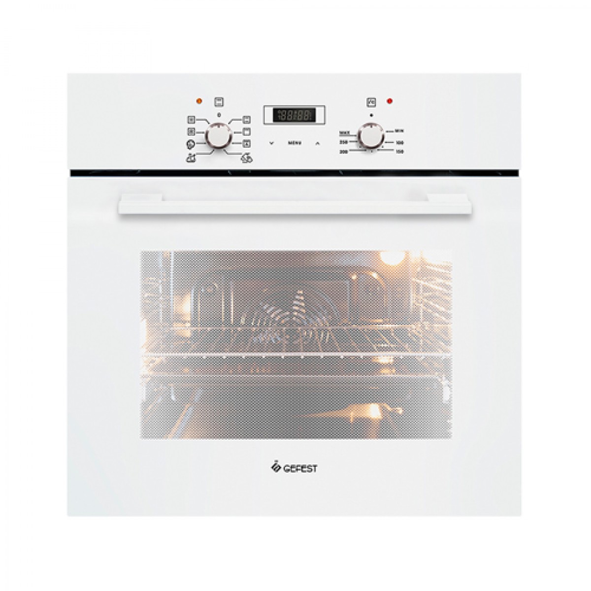 Электрический духовой шкаф Gefest ЭДВ ДА 622-02 БS выполнен в белом корпусе и обладает внутренним объемом 55 л, что делает его идеальным устройством для ежедневной эксплуатации. Возможность использования для приготовления форм и посуды разного диаметра позволяет готовить большие порции блюд. Вы можете приготовить большую пиццу или бисквит для торта, чтобы порадовать большую семью. Это независимый духовой шкаф, поддерживающий регулировку температуры до 275 °C. \nДля управления духовкой Gefest ЭДВ ДА 622-02 БS используется встроенный поворотный механизм, а конкретно, переключатели. Дисплей, предусмотренный на панели, позволяет облегчить настройку устройства, ведь все результаты настройки и текущий режим будут отображаться на дисплее. Модель поддерживает режимы \"Гриль\", \"Конвекция\" и предусматривает в комплекте вертел. Благодаря этому вы сможете готовить разные мясные блюда: запекать на вертеле курицу или готовить блюда восточной кухни. Доводчик откидной двери не допустит ее резкого открывания.
