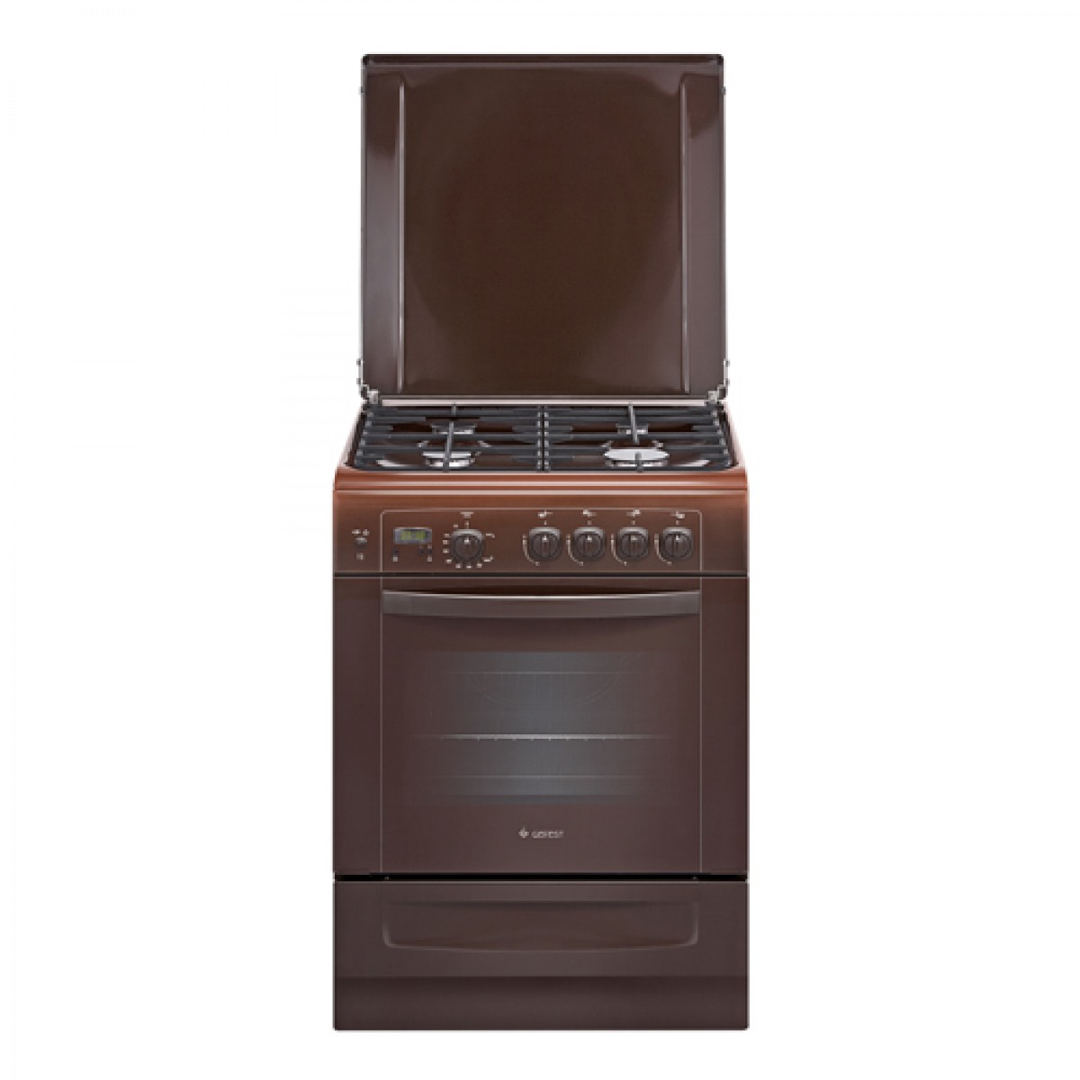 GEFEST 6100-03 0001 – газовая плита, выполненная в приятном темно-коричневом цвете. Такое дизайнерское исполнение устройства делает модель подходящей для установки в кухне, стилизованной под кантри-стиль. Аппарат спроектирован и разработан легендарной компанией GEFEST, а значит, вы можете не сомневаться в первоклассном исполнении устройства. \nGEFEST 6100-03 0001 оборудована четырьмя классически расположенными горелками. Духовой шкаф устройства обладает традиционным объемом, который составляет 52 л. Тщательно продуманная архитектура модели предусматривает присутствие двойной подсветки духовки, гриль-горелки, а также проволочных направляющих. Устройство оборудовано регулируемыми ножками, которые позволят максимально ровно установить прибор, компенсировав неровности пола. В расширенную комплектацию модели также включены вертел, решетка для установки блюд, противень, жаровня. Корпус оборудован вместительным ящиком для хранения крупногабаритной посуды: сотейников, утятниц, кастрюль и т. д.