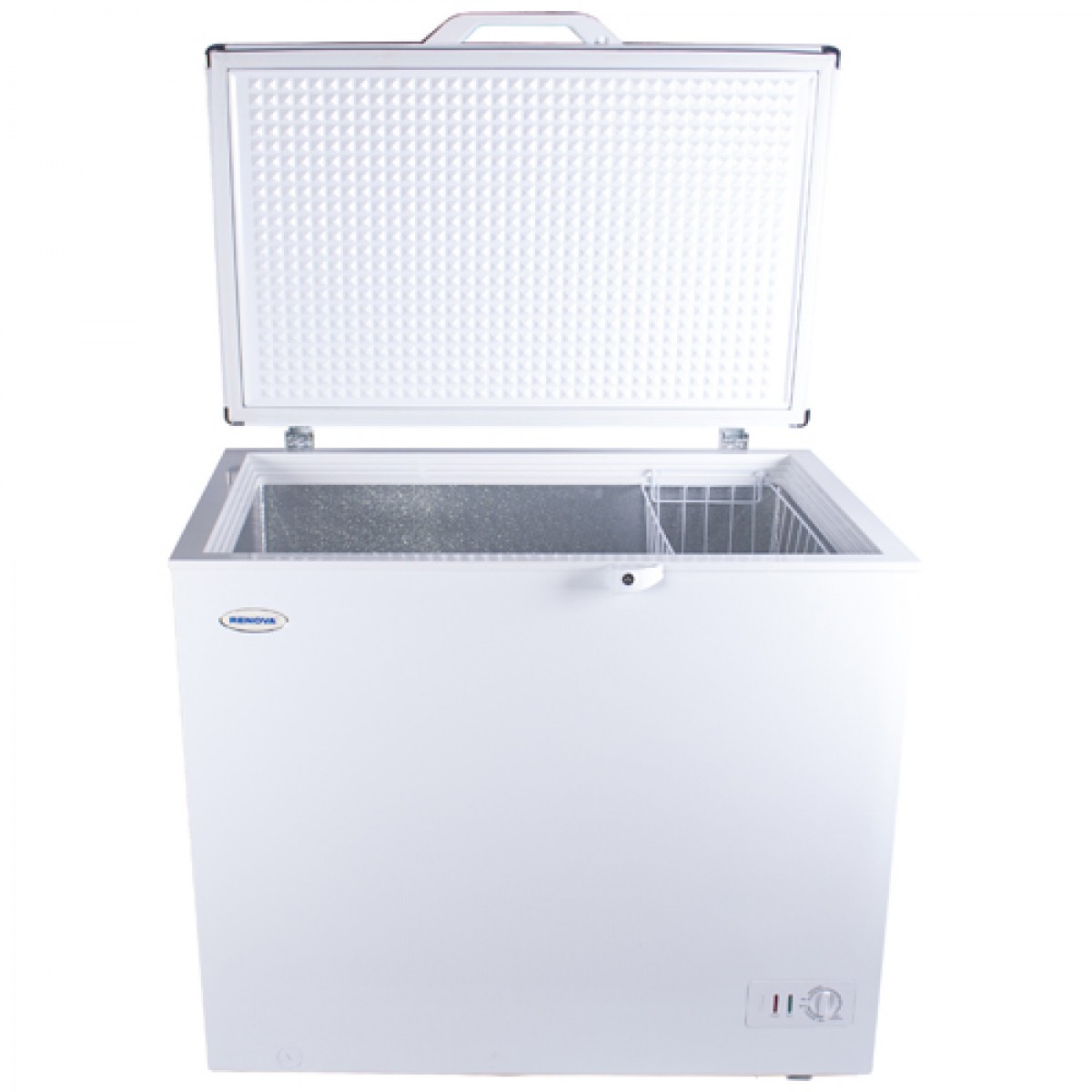 Морозильный ларь RENOVA FC-320C с внешним покрытием из белого пластика имеет откидную дверцу, за которой находится подвесная корзина с полезным объемом 273 л. Доступ к режимам работы осуществляется через поворотный переключатель. Особенностью модели является возможность использования в качестве холодильника. \nКорзина RENOVA FC-320C выполнена из металла, устойчивого к появлению коррозии. Модель работает в режимах заморозки до -28 °С и охлаждения до 6 °С. Удаление наледи со стенок осуществляется путем отключения прибора от сети. Предусмотренные в основании ножки гарантируют устойчивое положение прибора на любой поверхности.