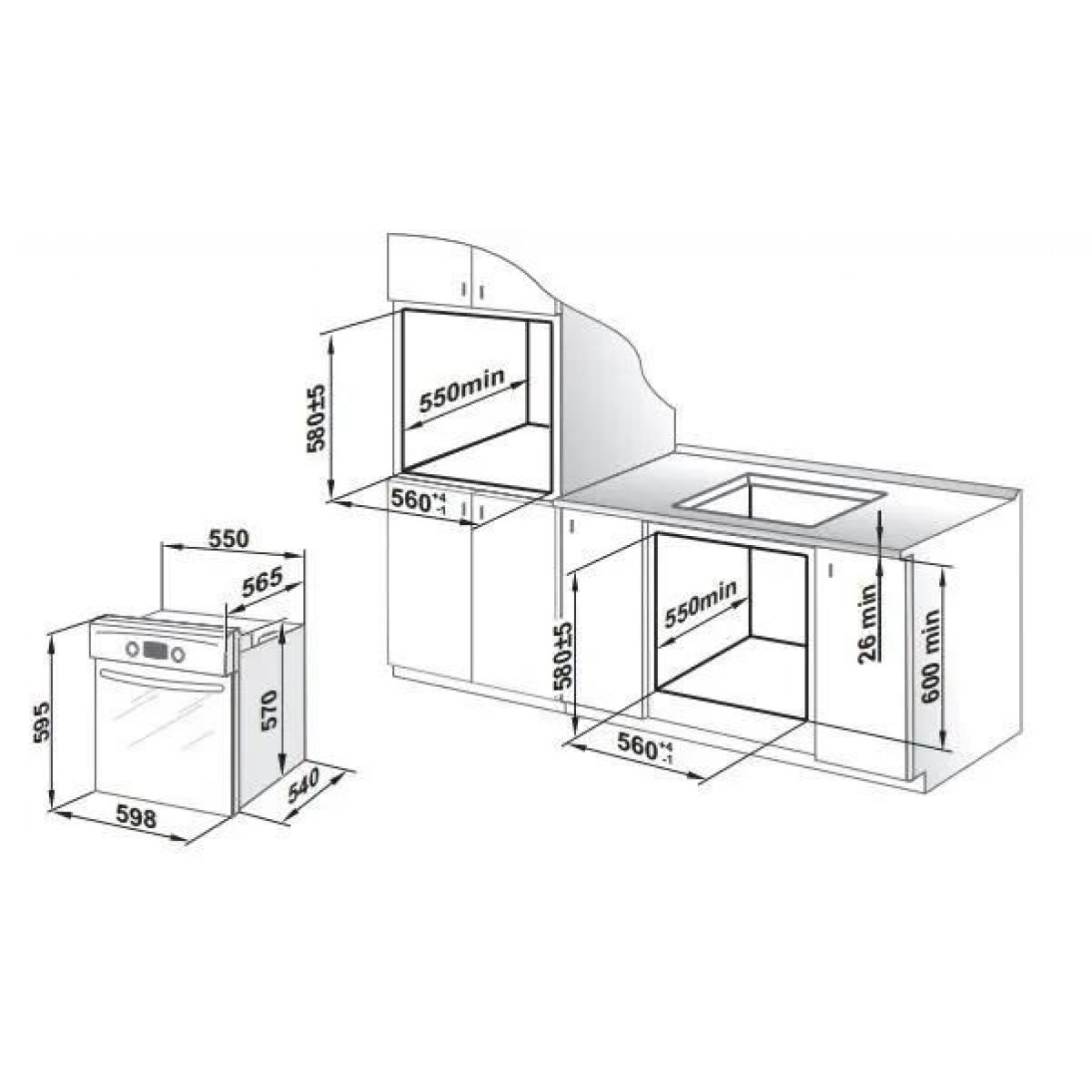 | Размеры ниши для встраивания (ШхГхВ) | 55x54x57 см |