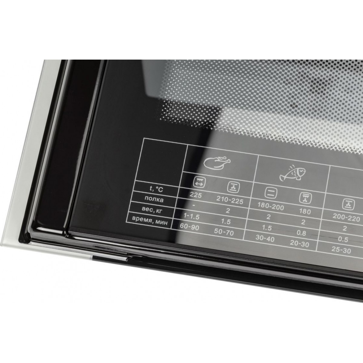 | Особенности конструкции | двухуровневое освещение, дисплей, полностью стеклянная внутренняя поверхность дверцы духовки |