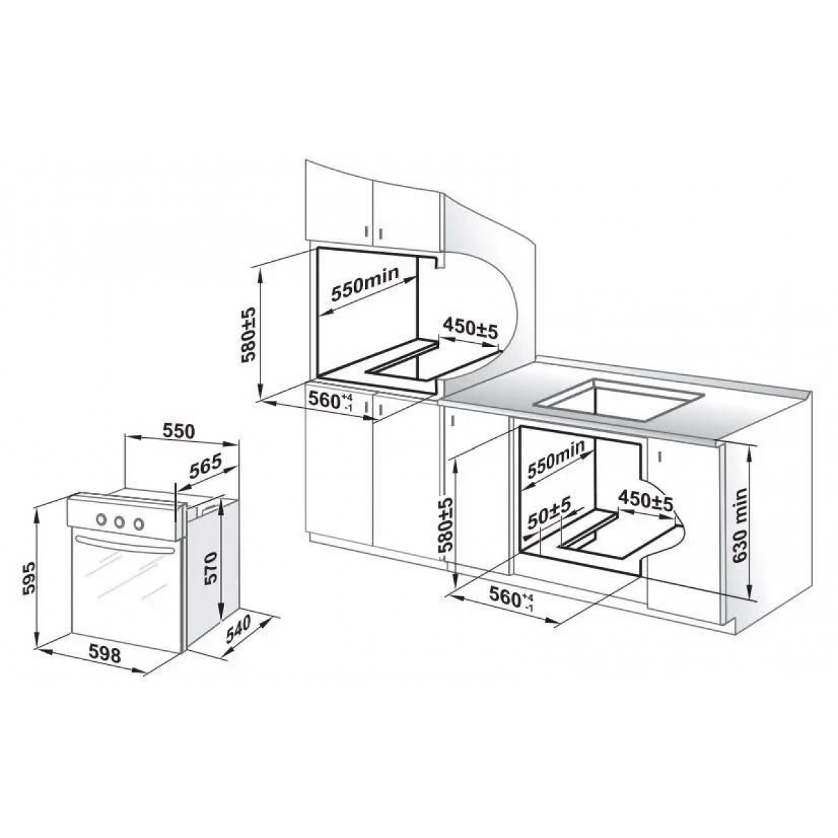 | Размеры ниши для встраивания (ШхГхВ) | 56x55x58 см |