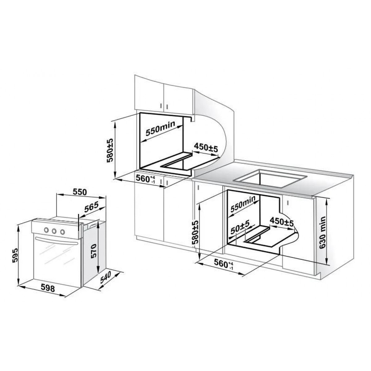 | Размеры ниши для встраивания (ШхГхВ) | 56x55x58 см |